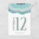 Not all wedding designs are created equal. The asymmetrical layouts for the pieces in this striking wedding set prove that's not a bad thing! Wavy bands of colour in contrasting shades of teal blue and blush pink with a centre of glittering crystal form a geode/agate accent on most pieces in the set. The wedding 'Table Number' card shown here features the above plus a template to add your names and wedding date. Search ID647 to see all the coordinating pieces in this set.