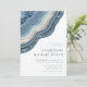 Not all wedding designs are created equal. The asymmetrical layouts for the pieces in this striking wedding set prove that's not a bad thing! Wavy bands of color in shades from dusty blue to sandy beige with a center of glittering crystal form a geode/agate accent on most pieces in the set. The reverse features a coordinating abstract background reminiscent of stone veined with glitter. The wedding invitation shown here features the above plus a template to add your pertinent wedding event details. Search ID647 to see all the coordinating pieces in this set.