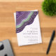 Not all wedding designs are created equal. The asymmetrical layouts for the pieces in this striking wedding set prove that's not a bad thing! Wavy bands of colour in contrasting shades of violet purple and green, with a centre of glittering crystal form a geode/agate accent on most pieces in the set. The acrylic wedding invitation shown here features the above plus a template to add your pertinent wedding event details. Search ID647 to see all the coordinating pieces in this set.
