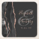 Agate Geode Script Black Rose Gold Dark Wedding Square Paper Coaster