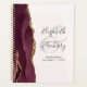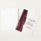 Cette élégante wedding planner moderne présente un design d'aquarelle bordeaux orné d'une parties scintillant en faux or. Customisez facilement le texte gris fusain sur un arrière - plan roux, avec les noms du couple dans la calligraphie manuscrite sur une grande esperluette. Ajoutez le titre et la date du mariage ci-dessous en italique. La couverture arrière est assortie d'un design d'agate bordeaux et or.