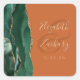 Agate Geode Script Emerald Green Gold Rust Wedding Square Sticker
