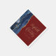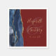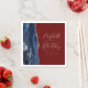 These elegant modern wedding napkins feature a navy blue watercolor design trimmed with faux gold glitter. Easily customize the gold-coloured text on a burgundy red background, with the names of the bride and groom in handwriting calligraphy over a large ampersand.