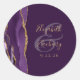 Agate Geode Script Purple Gold Plum Wedding Classic Round Sticker