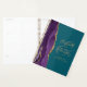 This elegant modern wedding planner features a purple watercolor design trimmed with faux gold glitter. Easily customize the gold-coloured text on a teal blue background, with the names of the bride and groom in handwriting calligraphy over a large ampersand. Add the title and wedding date below in italics. The back cover features a matching purple and gold agate design.