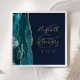 Agate Geode Script Teal Gold Navy Blue Wedding Napkin