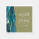 Agate Geode Script Teal Gold Olive Green Wedding Napkin