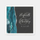 Agate Geode Script Teal Silver Dark Wedding Napkin