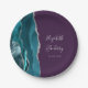 Agate Geode Silver Script Purple Wedding Paper Plate