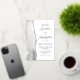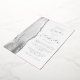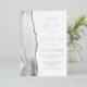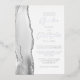 The left-hand edge of this elegant modern wedding invitation features a grey watercolor agate border trimmed with faux silver glitter. The customizable text combines script and sans serif fonts in real silver foil on a white background. The reverse side features a matching agate design.