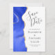 Cette élégante carte moderne de sauvegarde de date comporte une bordure d'aquarelle bleu royal ornée d'une parties scintillant en faux or. Le texte personnalisable est gris charbon sur un arrière - plan blanc. L'envers est assorti d'un design d'agate bleu royal et or.