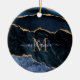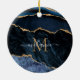 Agate Navy Blue Gold Gemstone Marble Monogram Name Ceramic Ornament