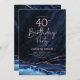 Agate Navy Blue Rose Gold 40th Birthday Invitation