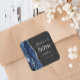 This elegant modern 50th birthday party sticker features a navy blue watercolor agate geode design trimmed with faux silver glitter. Easily customize the silver grey text on a slate black background with the name of the guest of honour, the birthday year and the date.