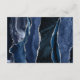 The left-hand edge of this elegant modern wedding details enclosure card features a navy blue watercolor agate border trimmed with faux silver glitter. The title is in modern handwriting script, with the customizable text below in charcoal grey copperplate font on a white background. The reverse side features a matching navy blue and silver agate design.