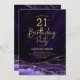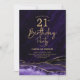 Purple and gold agate 21st birthday party invitation. Elegant modern design featuring watercolor agate marble geode background, faux glitter gold and typography script font. Trendy invite card perfect for a stylish women's bday celebration. Printed Zazzle invitations or instant download digital printable template.