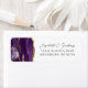 Le bord gauche de cette élégante étiquette d'adresse de retour de faire-part de mariage moderne comporte une bordure d'aquarelle violette ornée d'une parties scintillant en faux or. Le texte personnalisable combine écriture grise fusain et polices sans serif sur un arrière - plan blanc.