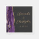 These elegant modern wedding napkins feature a purple watercolor design trimmed with faux gold glitter. Easily customize the gold-coloured text on a slate black background, with the couple's names in stylish handwriting calligraphy and the date in sans serif font.