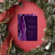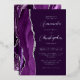 The left-hand edge of this elegant modern wedding invitation features a purple watercolor agate border trimmed with faux silver glitter. The customizable text combines script and sans serif fonts in real silver foil on a plum background. The reverse side features a matching agate design.