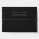 The inside of this elegant modern wedding invitation envelope features a teal blue watercolor agate design trimmed with faux gold glitter. Customize the back flap with the couple's names in stylish gold-coloured handwriting script and the return address in sans serif font on an off-black background.