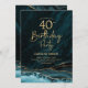 Agate Teal Gold 40th Birthday Invitation