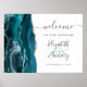 Agate Teal Silver Script Wedding Welcome Poster