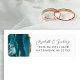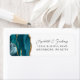 Le bord gauche de cette élégante étiquette d'adresse de retour de faire-part de mariage moderne comporte une bordure turquoise d'aquarelle bleue ornée d'une parties scintillant en faux or. Le texte personnalisable combine écriture grise fusain et polices sans serif sur un arrière - plan blanc.
