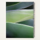 This photograph features a view of a close-up of agave leaves with variations of green tones.