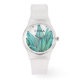 Trendy drawing sea green agave plant on a white background with monogram name design.