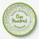Age 100 Scattered Number Pattern Green/White Paper Plate