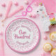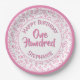 Age 100 Scattered Number Pattern Pink/White Paper Plate