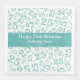 This modern numerical design is a teal and white random number pattern with the teal milestone number 25 repeated in varied sizes and angles over a white background. The teal banner in the centre has three lines of text: "Happy 25th Birthday," your name, and your birth date. Each line has a text template so you can easily personalize it.