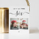 Black and white script wedding Table Number card "When we were age" with photo of groom and bride.