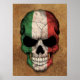 This unique design features the flag of Italy painted on an aggressive skull. The Italian colors cover the entire skull with large cracks snaking across the bone. The skull sits on a aged, worn out background with natural brown colors which gives the pattern a vintage look. This dark pattern is a unique way to show off your patriotism.