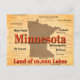 Aged antique paper Minnesota state pride image including map silhouette with cities, towns and nickname.