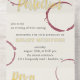 All in one gold foil wine tasting party invitation to celebrate a birthday in off-white with burgundy wine glass stains and a stylish brush script. Aged to perfection wine themed invitation, perfect for birthdays and wine tasting evenings with gold foil details and red wine stains. RSVP attached in a matching style.