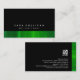 Cet impressionnant agent immobilier professionnel bold green Metal carte de visite dispose d'une élégante bande de réflexion en métal vert. Parfait pour les thèmes à fort impact, actif, mode, style, chic, professionnel, moderne, sophistiqué, abstrait, administration, finances, gestion, comptabilité, affaires, consultant.