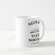 Mug featuring a funny design containing an open book and stars and text saying "Agitate Your Noodle, Read a Book", as in giving the brain a workout. The text and the color of the design can be changed using the "Edit this design" section.