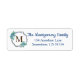 Étiquettes de adresse chic de ferme avec une couronne de bleuets encerclant la lettre monogramme de votre famille en blanc. L'arrière - plan est blanc.