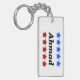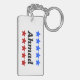 Porte - clé double face avec le nom Ahmad en noir, décoré avec des étoiles rouges et blanches sur le dessus et le bas du nom.