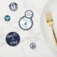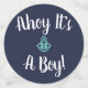 Classic navy and white Ahoy It's A Boy confetti that is meant to be customized with your due date with solid navy on one side and navy stripes on the other with touches of light teal