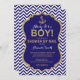 Ahoy it's a Boy! Nautical Baby Shower by mail Invitation. Navy Blue and Gold Glitter. Navy and White Chevron background. For further customization, please click the "Customize it" button and use our design tool to modify this template.