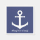 A white ship's anchor is on a blue background on this nautical baby shower napkin.