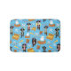 Ahoy! It's a Pirate Treasure Hunt Kids Pattern Bath Mat. Adorable girl and boy pirates on a treasure hunt. Gold coins, telescopes, skulls with crossbones, swords and pirate ships in a pattern on a pretty blue sea background. www.SamAnnDesigns.com