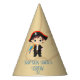 Top off your little pirate’s big day with this adorable party hat featuring a cheerful young pirate and his colorful parrot sidekick! Personalize it with the birthday child’s name for an extra special touch. A perfect accessory for photos, cake time, and all your swashbuckling adventures. Ideal for pirate-themed birthdays, treasure hunts, or sea-worthy celebrations!