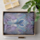 This is Silver Blue Lavender Turquoise Tissue Paper. The design was created with artificial intelligence art. The artwork features a silver and blue pattern on a lavender background. The pattern is an elegant artistic design, a blend of Klimt and Hockney. The size of the tissue paper is 15" x 20". You can customize your own creative tissue paper for gift wrapping. You can add something simple like the recipients’ name, or get fancy by adding a design, photo, image or artwork for a one-of-a-kind look. Add pizazz to any present. Please note that this size tissue arrives folded. The dimensions are 15” l x 20” when unfolded and 15" l x 10" when folded. The tissue paper has full colour edge-to-edge print. The tissue is 10 lb paper, comparable to standard tissue paper. The tissue paper is available in 7 colours. The tissue allows for easy stuffing. The tissue paper is great for wrapping jewellery, small gifts and party favours. This tissue paper is not intended for food contact use.