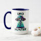 Alien and UFO graphic for those into UFOlogy. A cute alien being beamed down from a UFO.