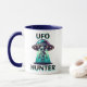 Alien and UFO graphic for those into UFOlogy. A cute alien being beamed down from a UFO.