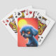 These playing cards have a crazy looking dog on them.