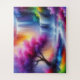 Contemporary Trendy AI Generated Colourful Abstract Art Modern Purple Blue Red Yellow Green Forest Waterfall Landscape Oil Painting Horizontal Oversized Pieces Puzzle.